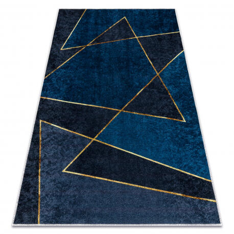 A Miro Washable szőnyeg kiváló minőségű 100% poliészterből készült, ami garantálja a hosszú élettartamát és a kopásállóságát. Csúszásmentes kialakításának köszönhetően bármilyen felületen biztonságos, így ideális választás gyermekes vagy háziállatos otthonok számára. Geometrikus mintája kék színben modern és stílusos megjelenést kölcsönöz a térnek.