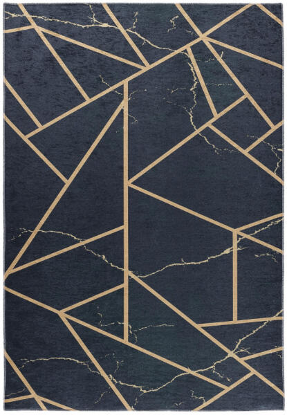 Mosógépben mosható szőnyeg. Modern mintázatú fiatalos szőnyeg. Több méretben kapható. K önnyen tisztítható, antisztatikus, antiallergén, színét hosszú távon megőrzi. Készlethiány esetén a szállítási idő 1-1,5 hét. Szélesség: 120 cm Hosszúság: 170 cm Szín: Fekete-arany Anyag: 100% festék nyomott poliészter Hátlap: Mosható, csúszásgátlós latex