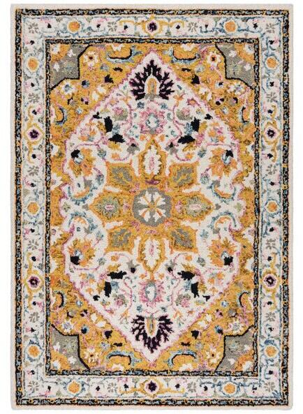 Flair Rugs Dahlia téglalap alakú szőnyeg, 160 x 230 cm, 3400 g/m2, 100% gyapjú, többszínű A Dahlia gyapjúszőnyeg kitűnő örökségi stílusával, fényűző arany tónusaival és bonyolult, többszínű részleteivel lehorgonyozza terét. Ez a klasszikus megjelenés tökéletesen illeszkedik mind a hagyományos, mind a modern otthonokba, mélységet és textúrát kölcsönözve. Ez az