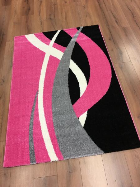 Készleten lévő termék gyors szállítással 1-3 munkanapon belül! Modern mintázatú fiatalos szőnyeg. Több méretben és színvariációban is kapható. Padlófűtés esetén is használható, könnyen tisztítható, antisztatikus, antiallergén, színét hosszú távon megőrzi. Szélesség: 160 cm Hosszúság: 230 cm Szín: Pink-fekete-szürke Anyag: 100% Polipropilén (PP) Hátlap: Juta