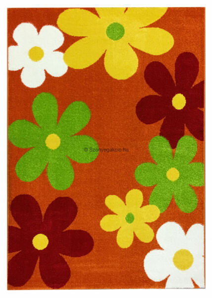 Színes, vidám virág mintás szőnyeg narancssárga alapszínnel. Puha tapintású, kellemes érintésű szőnyeg, melyen gyermeke is szívesen játszana. Száltípus: friese szőnyeg Súly: 2000 gr/nm Anyag: 100% polipropilén - Antiallergén - Padlófűtés esetén is használható - Könnyen kezelhető - Tartós szín Kereskedelmi forgalomban kapható általános szőnyegtisztító készítm