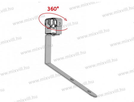 Anyaga: inox (AiSi) 8mm átmérőjű köracél befogására 120°-ban döntött talp 360°-ban forgatható befogó