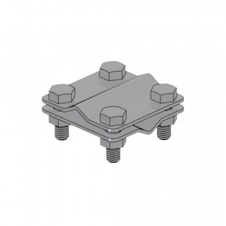 MGKS-01/2AA AiSi-4 V4 015104 Multikapocs rozsdamentes 8-12mm köracél összekötéséhez A GKS 01/2 AA típusú keresztcsatlakozó 8 - 12 mm átmérőjű kerek vezetékek csatlakoztatására szolgál. 2 db 58 mm x 58 mm méretű lemezből, 4 db M8 csavarból és 4 db M8 anyából áll.