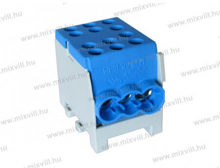 1 pólusú Oldalanként 3-3 ónozott furattal: 2x35mm2 és 4x25mm2, így nem csak réz, hanem alumínium vezeték is beköthető Beköthető vezetékméret: 2x10-35mm2 be-, 4x1,5-25mm2 leágazó DIN 35 mm-es sínre szerelhető. XBS FVKO 35/25mm2 - szürke (fázisvezetők kötésére) - kék (nullavezetők kötésére) - zöld-sárga (földeléshez)