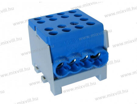 1 pólusú Oldalanként 4-4 ónozott furattal: 2x35mm2 és 6x25mm2, így nem csak réz, hanem alumínium vezeték is beköthető. Beköthető vezetékméret: 2x10-35mm2 be-, 6x1,5-25mm2 leágazó Változatok: - zöld-sárga (földeléshez) DIN 35 mm-es sínre szerelhető XBS FVKO 35/25mm2 - szürke (fázisvezetők kötésére) - kék (nulla vezetők kötésére) - zöld-sárga (földeléshez)