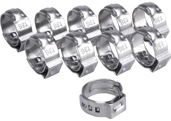 Alacsony- és közepes nyomású tömlők rögzítésére használható. Anyaga: acél, króm-fényű horganyzással Nr. 1.4301 (18/10) Elméleti szorítási tartomány: 15,0 - 17,0 mm Szalagszélesség: 8,0 mm