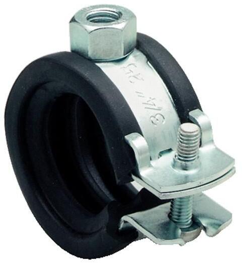 Gumibetétes könnyűfém csõbilincs. Felhasználható épületgépészeti célokra, csõvezetékek megfogatására. A gumis bilincset M8-as vagy M10-es csavarokkal (ászokcsavarokkal) lehet felfogatni.