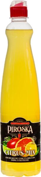 Piroska citrus-mix grapefruit-citrom ízű gyümölcsszörp cukorral és édesítőszerekkel. Világossárga színű, grapefruitra és citromra jellemző illatú és ízű termék. Csomagolás: 0,7 literes PET palack