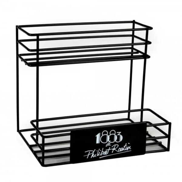 Stílusos bemutató állvány hat üveg szirup számára, Routin 1883 logóval. Tökéletes módja annak, hogy ezeket a prémium palackokat mindenki lássa.