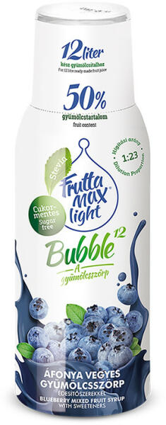 Vásárold meg most szuper áron termékünket és válogass több mint 5000 féle között! A kamraellato. hu oldalon nincs kockázat, ugyanis mindent valós magyarországi készlet ről szállítunk ki. Megnevezés: FruttaMax Bubble¹2 Light áfonya vegyes gyümölcsszörp édesítőszerekkel 500 ml Összetevők: Víz, Alma gyümölcslé 50%, Áfonya gyümölcslé 10% (sűrítményekből visszah