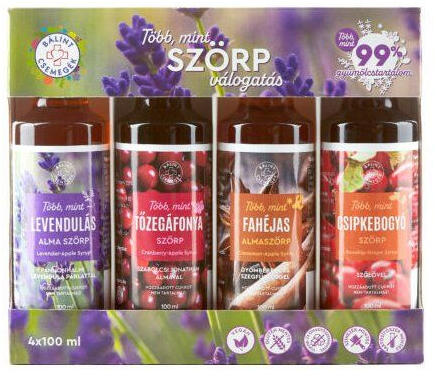 99% gyümölcstartalom, hozzáadott cukor és édesítőszer nélkül, aroma- és színezékmentes. 4x100 ml-es szörpválogatás; Bálint cseppek termék szörpök, szirupok készítéséhez.