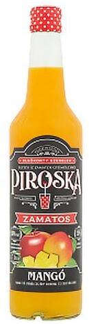 Szörp PIROSKA Mangó. Kiszerelés: 0,7l / üveg. Összetevők: Ivóvíz; Fruktóz-glükózszörp; Gyümölcslevek: almalé 32% (sűrítményből), mangólé 1% (sűrítményből); Étkezési sav (citromsav); Aromák; Stabilizátorok (gumiarábikum, fagyanta glicerin-észterei); Tartósítószerek (kálium-szorbát, nátrium-benzoát); Antioxidáns (aszkorbinsav); Édesítőszer (szukralóz); Szí
