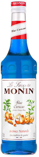 A Curaçao egy szárított zöld narancshéjból készült likőr. A likőr narancs ízű, különböző keserű árnyalatokkal. Blue Curaçao lenyűgöző mélykék színéről ismert. A MONIN szirup Blue Curaçao alkoholmentes alternatívát kínál, amelyet főként az italok mélykék színének előidézésére használnak. Ugyanakkor ez a szirup minden koktélt enyhe egzotikus aromával gazd
