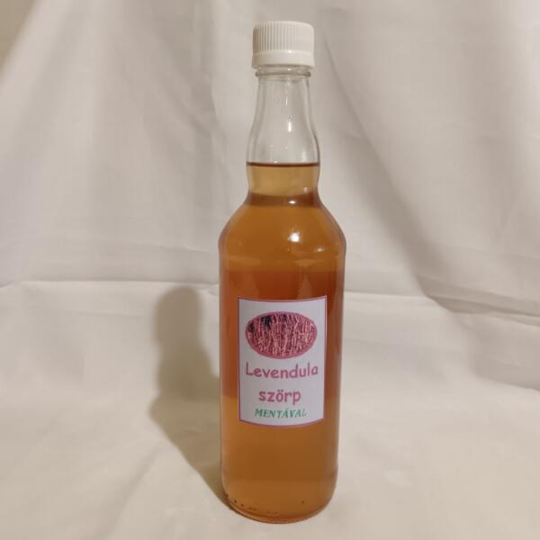 Friss levendulából és mentából készült 6-szoros hígítású házi szörp, amely természetes frissítő és nyugtató hatású.
