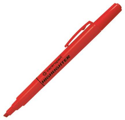 Teljesen fluoreszkáló szövegkiemelő háromszög alakú markolattal, fényvisszaverő tintával, amely minden típusú papírra írható, beleértve a faxot és az önmásolópapírt is. Ékvég, 1 - 4 mm lábnyomszélesség, szellőzősapkával. A szín vörös