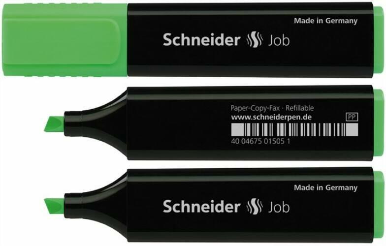 Termék neve: "JOB 150" szövegkiemelő, zöld Gyüjtő csomagolás: doboz=10db, gydob=10db, Gyujto=10db Márka: SCHNEIDER Csomagolási egység: db Leírás: - vágott hegy - élénk, nem fakuló színek - vízbázisú tinta - normál, fénymásoló és faxpapírhoz is ajánlott - magas tintatartalom a nagyobb hatékonyság érdekében - polipropilén test - klippel ellátott kupak - a kupak szín