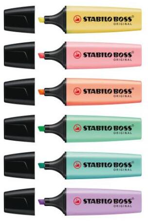 SZÖVEGKIEMELŐ KÉSZLET 2-5MM, VÁGOTT HEGYŰ STABILO BOSS ORIGINAL PASTEL, 6 KLF. SZÍN