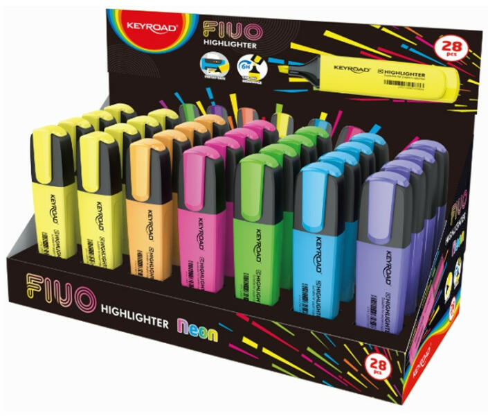 Ez a sokoldalú, folyadék tartályos szövegkiemelő a szabadon áramló tintájának köszönhetően könnyen siklik és sokkal jobb fedést biztosít. -vágott hegy -vékony és vastag vonalak egyaránt írhatóak vele -rendkívül élénkek a színek -nem üt át a különböző papír fajtán -fax, fénymásolat és bármilyen nyomtatott papír esetében is tökéletesen használható -kivál