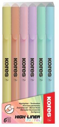 Szövegkiemelők KORES minőségben! -magas minőségű, toll formájú szövegkiemelő vágott heggyel és egyedi designnal -univerzális vízbázisú tinta, minden típusú papírhoz -több tintával a hosszabb élettartamért -intenzív pasztell színek Kiszerelés: 6 db/készlet
