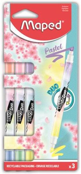 "Fluo Peps Duo" szövegkiemelő - két szín egy testben! '-vágott hegy -élénk színek -tinta színével megegyező kupak -normál, fénymásoló- és faxpapírhoz is ajánlott -kupak nélkül egy ideig kiszáradásmentes -helytakarékos -vonalvastagság: 1-5 mm -újrahasznosítható karton csomagolás