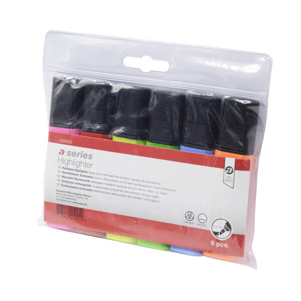 Szövegrészek, jegyzetek kiemelésére, szinte minden papír felületen. Vízbázisú, fényálló, semleges szagú festékkel töltött szövegkiemelő. Atinta nem üt át a papír túloldalára, és a kijelölt szöveg fénymásolata is olvasható marad. Elérhető 7 ragyogó neon színben. A vágott csúcs vonalvastagsága: 2-5 mm. A kupakon lévő praktikus klipsznek köszönhetően zsebre, v