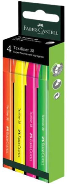 Faber-Castell: Textliner 38 Szövegkiemelő szett fluoreszkáló színekkel 4db-os csomag Hivatalos magyarországi forgalmazótól. Leírás: Világítsd meg a tanulást és a munkát a Faber-Castell Textliner 38 szövegkiemelő szettel! A csomag négy fluoreszkáló színt tartalmaz – sárga, narancs, rózsaszín és zöld –, hogy minden fontos információt élénken és hatékonyan kiemelhe