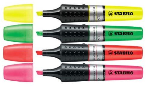 Vágott hegyű szövegkiemelő. Vízbázisú fluoreszkáló tinta. Ragyogó, élénk színek. Fénymásolható, faxolható. Hegyvastagsága 5 mm. írásképe 1-5 mm.