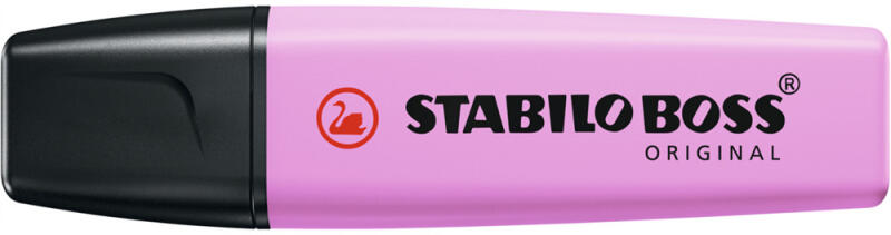 SZÖVEGKIEMELŐ 2-5MM, VÁGOTT HEGYŰ, STABILO BOSS ORIGINAL PASTEL MÁLNA Vízbázisú tinta. Kétféle (2-5 mm) vastagságú vonalat húz. Kiszáradás elleni technológiájánakköszönhetően akár 4 órán át sem szárad ki kupak nélkül. Tinta színével megegyező tolltest. Katalóguskód: 34034