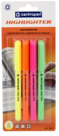 A highlighter a CENTROPEN márkából származik, a FAX kategóriába tartozik. A kiemelő ékvéggel rendelkezik az íráshoz. A kiemelő jelének szélessége 1-3 mm . Négy neon színből álló készlet, például sárga, narancs, rózsaszín és zöld. A kupakon egy klip található, sőt, a csomagolás normál használat melletti felbontása után legalább 3 évig kiszáradásgátló techno