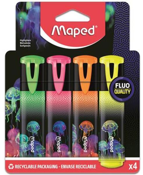 A "Deepsea Paradise" kollekció a lélegzetelállító színeivel a mélytenger csodálatos világába kalauzol minket. Végigkíséri a tanulókat az általános iskolás kortól egészen a középiskoláig. Fluo Peps szövegkiemelők új, vibráló külsővel! -garantált pontosság és hatékonyság -vízbázisú tinta -lágy, vágott hegy -vonalvastagság: 1-5 mm -normál-, fénymásoló- és
