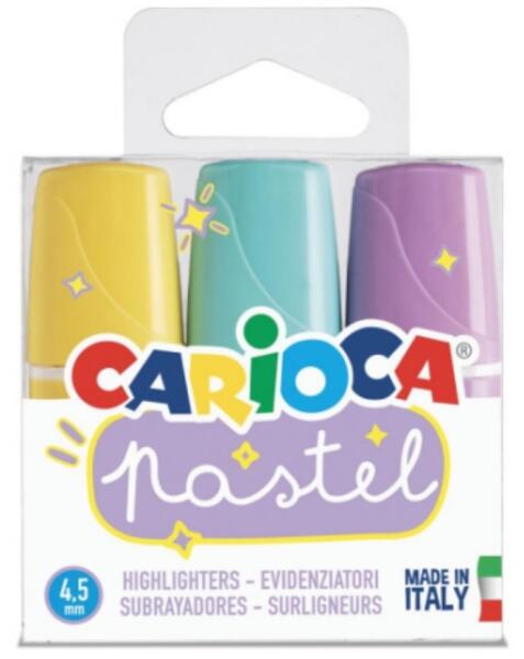 Pasztell Mini 3db-os szövegkiemelő szett - Carioca Hivatalos magyarországi forgalmazótól. Leírás: A népszerű Carioca Pasztell szövegkiemelő mini változata végre megérkezett! A mini szövegkiemelők kényelmesebben elférnek majd a tolltartóban vagy a táskában, így bárhol és bármikor használhatók. A 3db-os szett 3 különböző színű szövegkiemelőt tartalmaz, melyek tanul