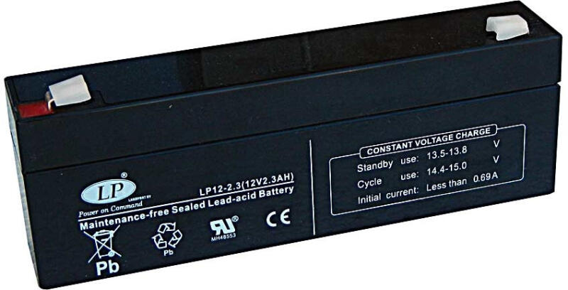 A Landport LP12-2.3 egy 12V-os, 2,3Ah kapacitású zárt ólom-savas (VRLA) akkumulátor, amelyet számos alkalmazásban használnak, például szünetmentes tápegységekben (UPS), riasztórendszerekben, és kisebb hordozható eszközök energiaellátására. Főbb specifikációk : Feszültség : 12V Kapacitás : 2,3Ah Technológia : Karbantartásmentes, zárt ólom-savas (VRLA) Jellemzők : Kar