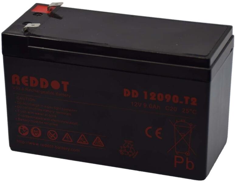 REDDOT DD12090 T2 12V 9Ah zselés akkumulátor melynek csatlakozója lehet T1 keskeny sarus és T2 széles sarus. Élettartam kb. 3-5 évFelhasználási területei: szünetmentes tápegységekbe, riasztó rendszerekbe stb. https://shop. unas. hu/shop_ordered/9300/pic/DD12090. pdf
