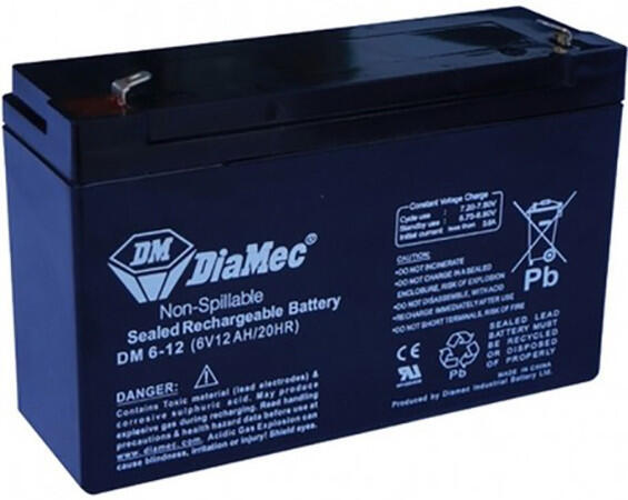 6V, 12Ah, zselés, ólom akkumulátor, gondozásmentes, 151x99.5x51mm, 1.77kg. - Felitatott, üvegszálas technológiával (AGM) készült savas, ólom akkumulátor. - Névleges feszültség: 6V. - Névleges kapacitás: 12Ah. - Elektrolit: kén sav. - Epoxigyanta szigetelés. - Réz csatlakozók. - Ólom oxid, pozitív pólus. - Ólom negatív pólus. - ABS műanyag tartály és keret. - Ciklikus