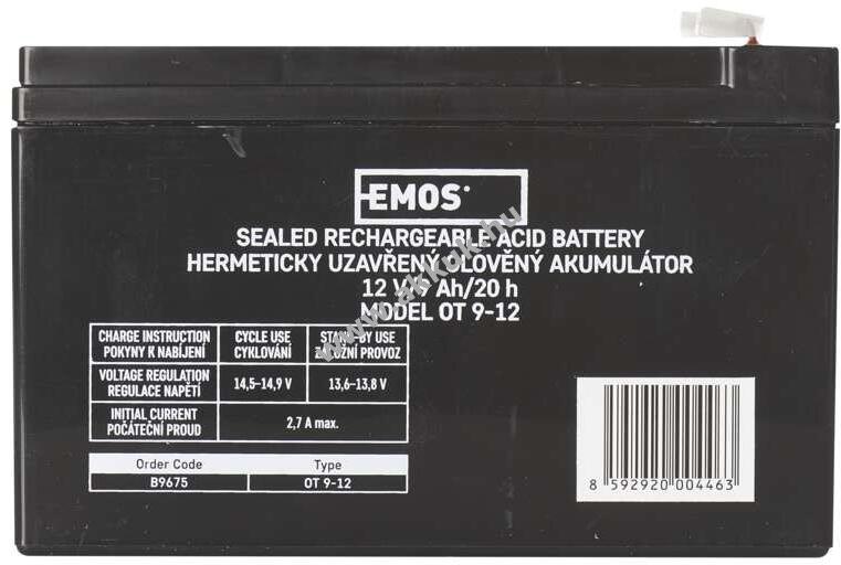 Feszültség: 12V - Teljesítmény: 9Ah - Típus: SLA - Méret: 151mm x 65mm x 94mm