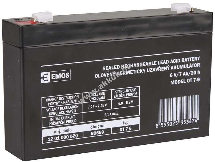 Feszültség: 6V - Teljesítmény: 7Ah - Típus: SLA - Méret: 151mm x 34mm x 94mm