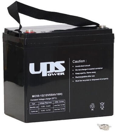 12V 55Ah UPS Power MC55-12 AGM technológiás, szeleppel vezérelt (VRLA) zártrendszerű gondozásmentes (zselés) ólomsavas akkumulátor. Az UPS Power márka egy megbízható energiatároló akkumulátor általános célú használatra mely ismételten újratölthető. Szigetelt tömítéssel vízszintes, függőleges és oldalsó irányban is elhelyezhető, biztonságát és funkcióit ez nem