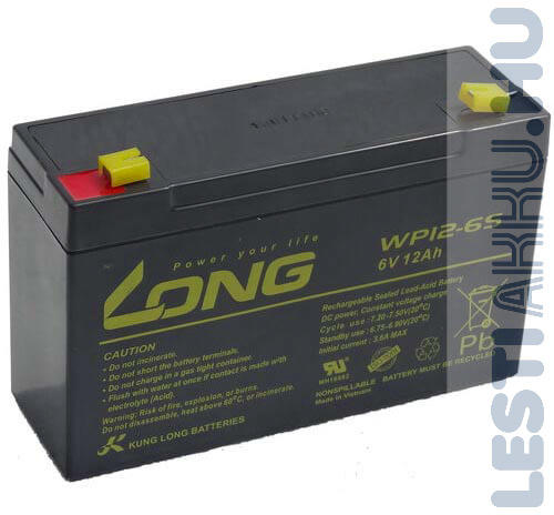 Termék leírása: Feszültség / kapacitás: 6V / 12Ah Méretek (kivezetésekkel és talpakkal együtt): 150*50*95mm (Ho*Szé*Ma) Pólus elrendezése(az akkumulátort szemből nézve): bal+ Indítóáram: Nincs gyári értéke Karbantartás: Zártrendszerű Pozitív saru átmérője (normál: 19,5mm vékony: 12,7mm): Csúszósarus Háztípus (Európai szabvány, vagy Japán ASIA szabvány): Szabv