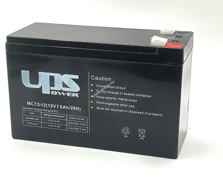 Feszültség: 12V - Teljesítmény: 7,5Ah - Típus: SLA - Méret: 151mm x 65mm x 95mm