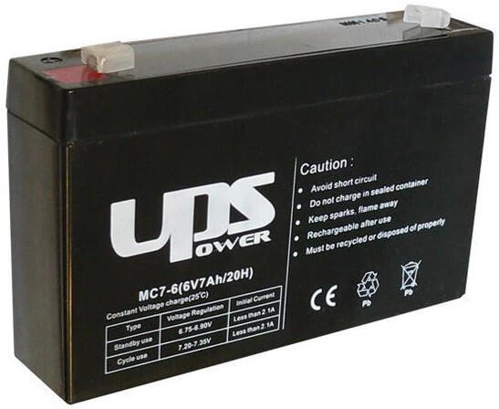 Az UPS Power 6V 7Ah MC7-6 AGM (Absorbent Glass Mat) technológiával gyártott karbantartás mentes ólomsavas zselés akkumulátor. Kiváló minőség és megbízhatóság a jellemzője. Az ólomlemezek és elektrolit megbízható tápellátást biztosítanak a legtöbb feszültségtámogatási rendszernek, például az UPS-nek vagy a vészhelyzeti áramellátásnak. Rendkívül erős teljesítm