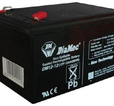 DIAMEC akkumulátor biztonságtechnikai rendszerekhez és elektromos játékokhoz, 12 V, 12,0 Ah, 151 x 99 x 95 mm, 3,65 kg, normál tápegységekhez. – Hosszú élettartam, jó dinamikus viselkedés, gondozásmentes, teljesen zárt.