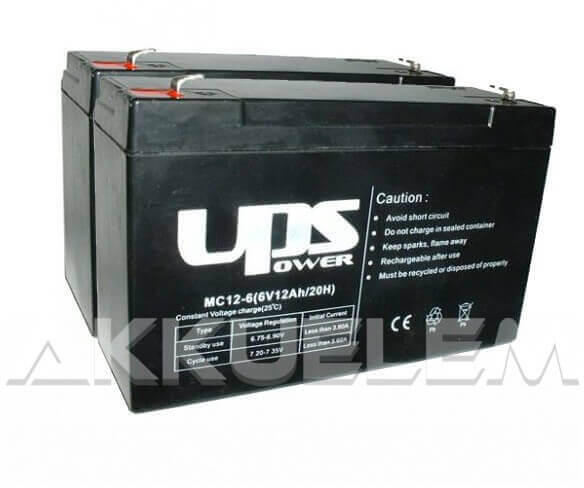Az akkucsomag 2 darab UPS Power 6V 12Ah (MC12-6) zselés akkumulátorból áll. A csomag csak az akkukat tartalmazza, a vezetéket nem! A csomag csak az akkukat tartalmazza, a vezetéket nem!