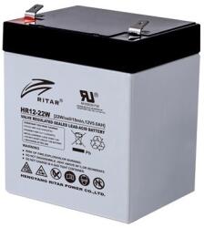 Ritar HR12-22W F2-es széles sarus 12V 5,5Ah nagyáramú zselés akkumulátor. Súly:1,7kgAlkalmazási terület:nagy áramú UPS, szünetmentes tápegységbe