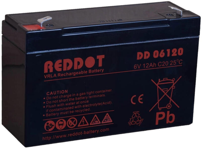RedDot DD06120 6V 12Ah AGM (Absorbent Glass Mat) technológiával gyártott karbantartás mentes ólomsavas zselés akkumulátor. Kiváló minőség és megbízhatóság a jellemzője. Az ólomlemezek és elektrolit megbízható tápellátást biztosítanak a legtöbb feszültségtámogatási rendszernek, például az UPS-nek vagy a vészhelyzeti áramellátásnak. Rendkívül erős teljesítmény