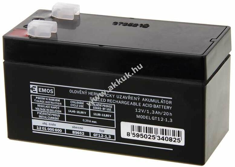 Feszültség: 12V - Teljesítmény: 1,3Ah - Típus: SLA - Méret: 97mm x 46mm x 52mm - kompatibilis típusok: VABO 59207 12 Volt 1200mAh| Power-Sonic PS-1212| PS1212| PowerSonic PS 1212| Sun Battery SB 12-1.2| Sun Battery SB12-1.2 12V 1.2Ah| ENER POWER SLC 1.2-12A 12V-1.2AH, 20HR| LP12-1.2 (1.2Ah/12V)| Panasonic LC-R121R3P