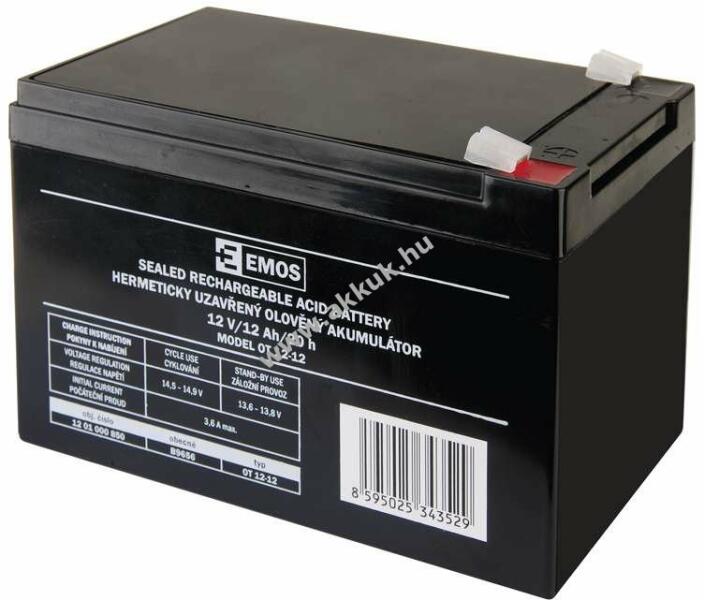 EMOS Ólomakkumulátor 12V 1.3Ah Cikkszám B9652 Termék leírás Az EMOS akkumulátor tartaléktelepként használható elektronikus rendszerekhez # biztonsági riasztórendszerekhez, tűzjelző rendszerekhez, liftek tartalék rendszereihez stb. A karbantartást nem igénylő, AGM kivitelű, biztonsági szelepes ólom-savas akkumulátor bármilyen helyzetben használható. Az optimális élettart