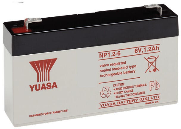 A YUASA NP1.2-6 6V 1,2Ah AGM (Absorbent Glass Mat) technológiával gyártott karbantartás mentes ólomsavas zselés akkumulátor. Kiváló minőség és megbízhatóság a jellemzője. Az ólomlemezek és elektrolit megbízható tápellátást biztosítanak a legtöbb feszültségtámogatási rendszernek, például az UPS-nek vagy a vészhelyzeti áramellátásnak. Rendkívül erős teljesítmé