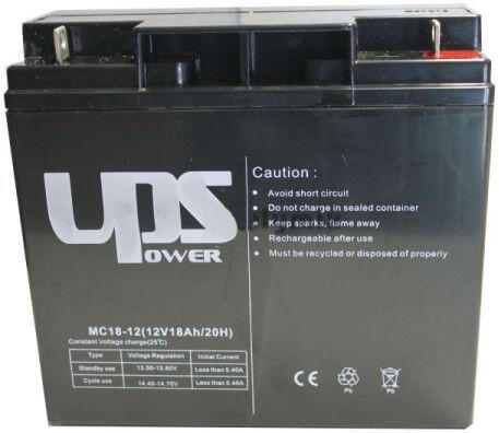 12V, 18Ah, zselés, ólom akkumulátor, gondozásmentes, 181x167x76mm, 5.6kg. - Felitatott, üvegszálas technológiával (AGM) készült savas, ólom akkumulátor. - Névleges feszültség: 12V. - Névleges kapacitás: 18Ah. - Elektrolit: kén sav. - Epoxigyanta szigetelés. - Réz csatlakozók. - Ólom oxid, pozitív pólus. - Ólom negatív pólus. - ABS műanyag tartály és keret. - Ciklikus