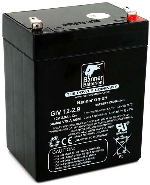 Banner Stand by Bull Bloc GiV 12-2.9 042600291205 VLRA AGM akkumulátor A Banner Stand by Bull Bloc GiV akkumulátorok zárt, szeleppel szabályzott akkumulátorok, melyekben az elektrolit üveggyapotban van megkötve. Mind az erõsáramú területen (szünetmentes tápforrások), mind tűzjelzõ berendezésekben és biztonsági világítóberendezésekben alkalmazhatók, több órán keresztül.