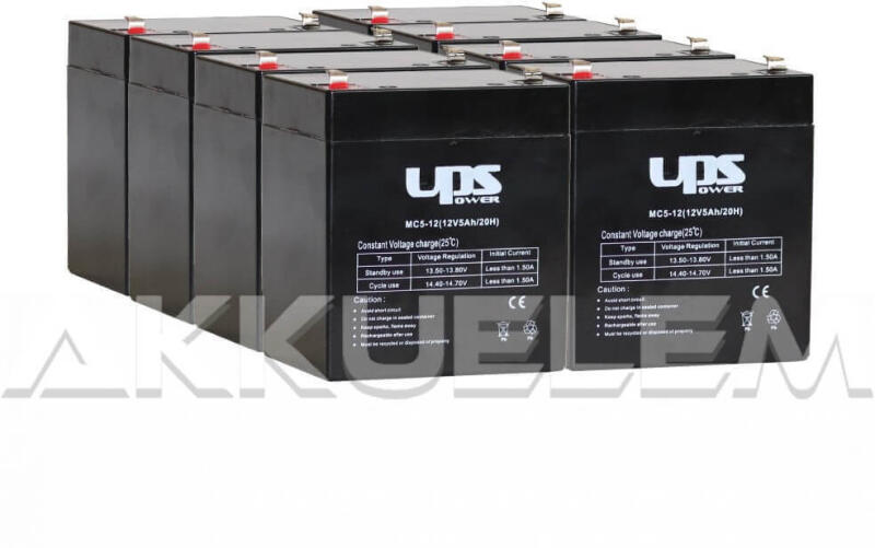Az akkucsomag 8 darab UPS Power 12V 5Ah (MC5-12) zselés akkumulátorból áll. A csomag csak az akkukat tartalmazza, a vezetéket nem! A csomag csak az akkukat tartalmazza, a vezetéket nem!